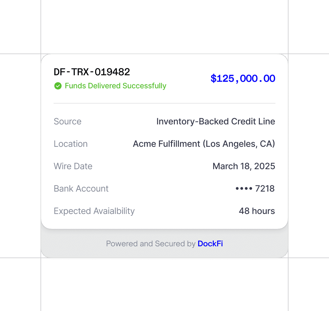 DockFi works inside your logistics systems to make financing available where your inventory already sits.