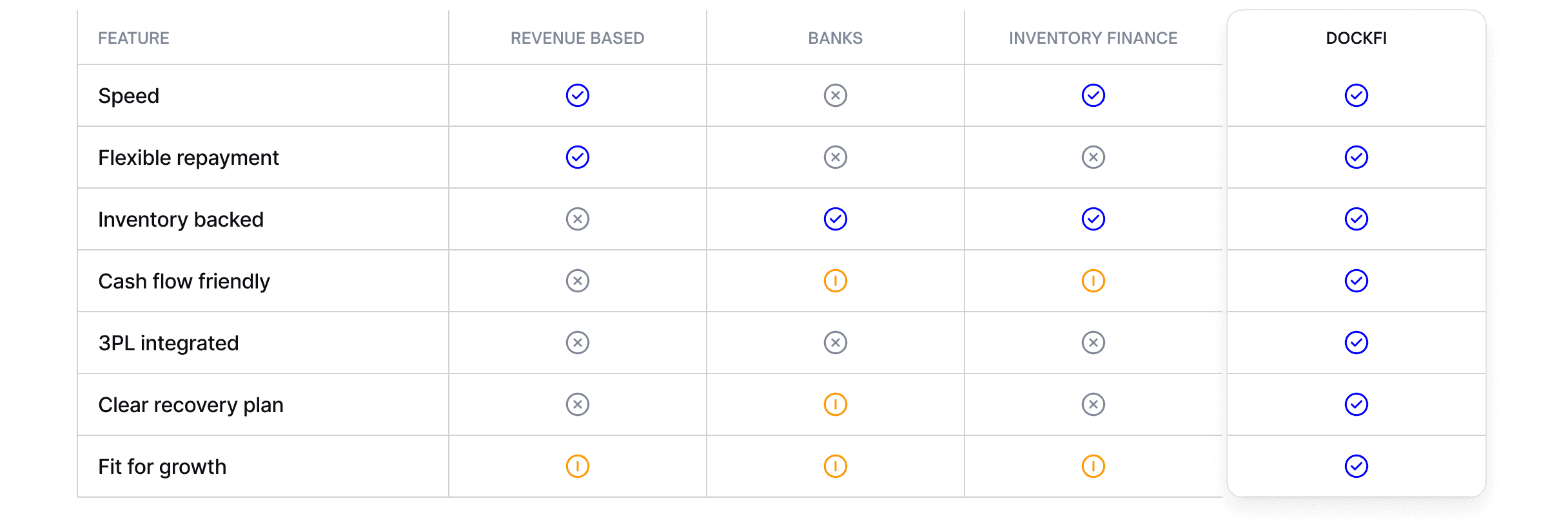 DockFi provides fast, straightforward inventory-backed funding designed for the realities of scaling physical goods—whether you’re a growing brand or an established operator.
